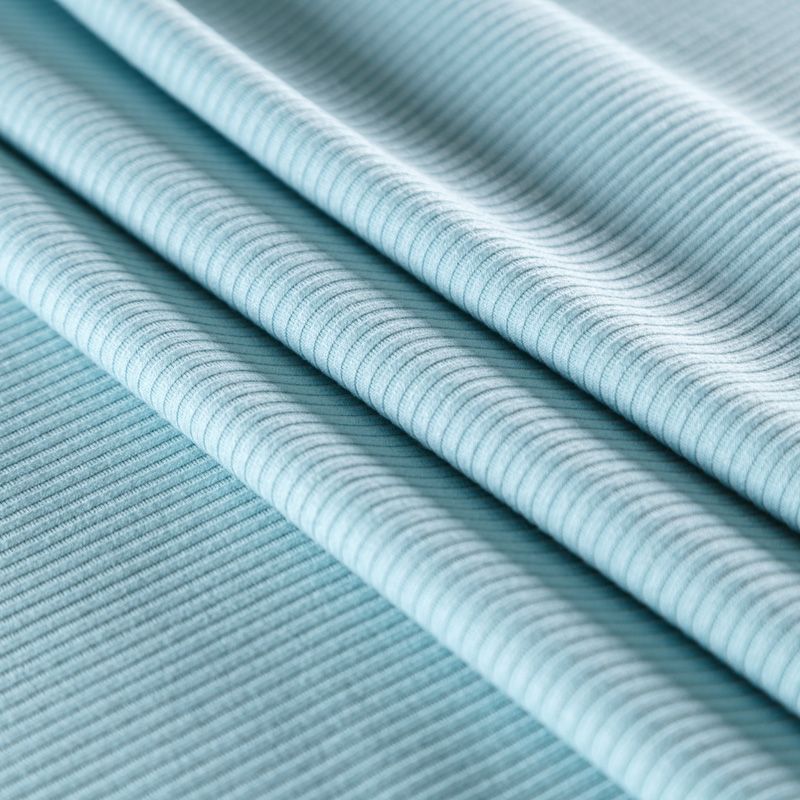 Трикотаж-лапша средней плотности, с высокой степенью эластичности, поверхность рельефная за счет эффекта резинки. С изнанки трикотаж гладкий, комфортный, подходит для использования без подклада. Сшить из такого полотна можно топы, лонгсливы, водолазки, платья,  юбки, брючные комплекты. Направление полос - вдоль линии кромки.