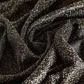 Нарядный трикотаж черного цвета с золотистым люрексом. Полотно мягкое, пластичное, хорошо драпируется, не колется и не просвечивает. Подойдет для пошива логслива, топа, туники, платья, кардигана, юбки.