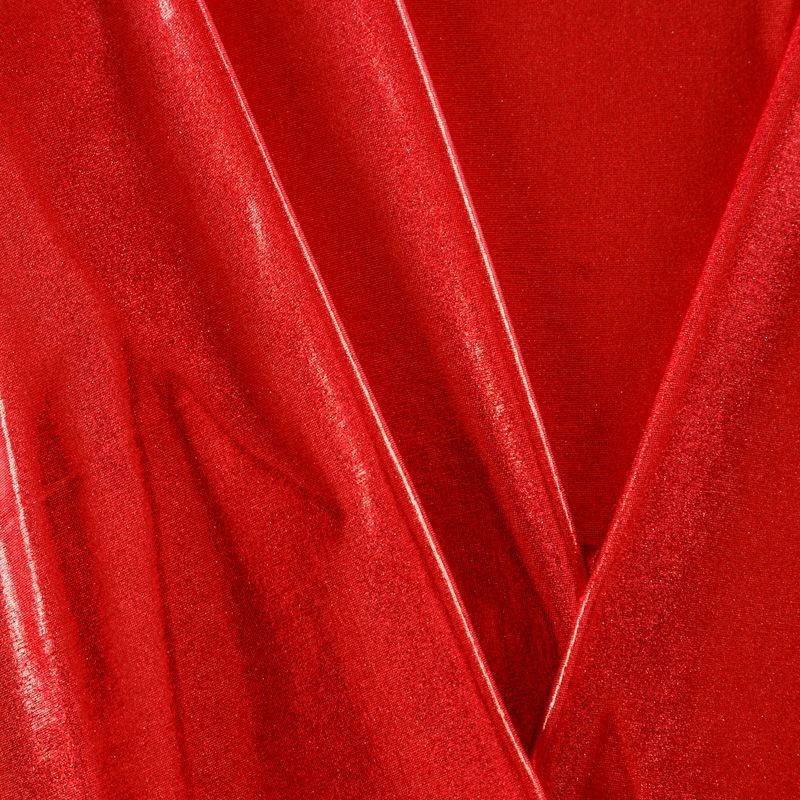 Эффектное трикотажное полотно с мерцающим напылением. Материал очень пластичный, образует струящиеся мягкие складки, отлично тянется, не просвечивает, не мнется. Изнаночная сторона матовая, приятная на ощупь. Идеальный выбор для нарядных платьев, топов, маек, гимнастических и танцевальных костюмов.