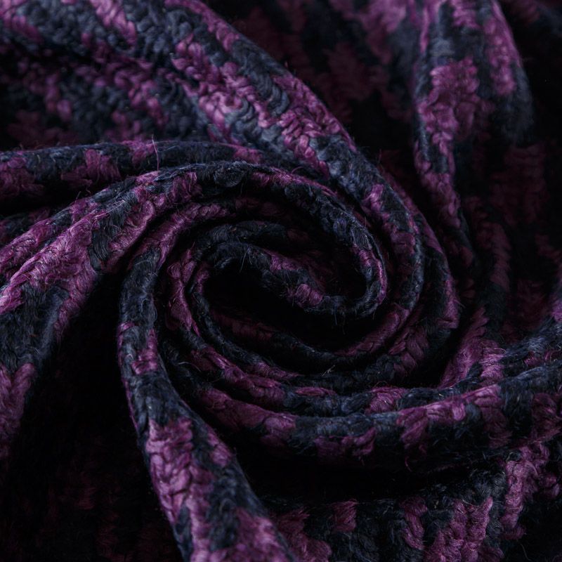 Шерстяной твид с плетеной и немного буклированной поверхностью, узор "гусиная лапка" образуется переплетением темно-синих и сиреневых нитей. Ткань не сухая, мягкая, но плотная, не просвечивает, теплая, хоршо драпируется. Отлично подойдет для пошива верхней одежды, жакетов, костюмов, юбок.