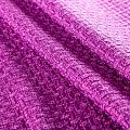 Полушерстяной итальянский твид насыщенного благородного лилового оттенка. Ткань плотная, в меру объемная с легким эффектом букле из нитей того же цвета, которые образуют мелкую клетку. Твид мягкий, пластичный, умеренно держит форму, прекрасно подойдет для пошива жакетов на подкладке, жилетов, кардиганов, легких пальто, юбок и платьев.