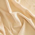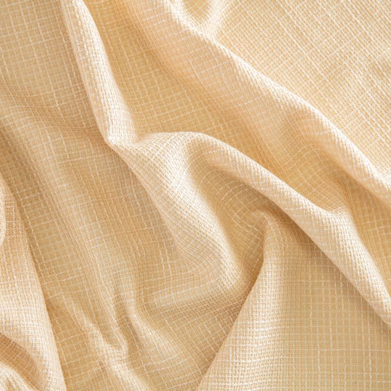 Отличительная особенность этой ткани в полотняном плетении нитей, характерного для рогожки, олицетворяющая сложную "клетчатую" геометрию в бежево-молочных оттенках. Различная толщина нитей создает эффектную фактуру. Ткань достаточно формоустойчивая, при этом пластичная, гибкая за счет плетения,  матовая, мягкая, приятная на ощупь, не рыхлая. Прекрасно подойдет для пошива жакета, юбки в виде трапеции, легкого пальто, костюма.
