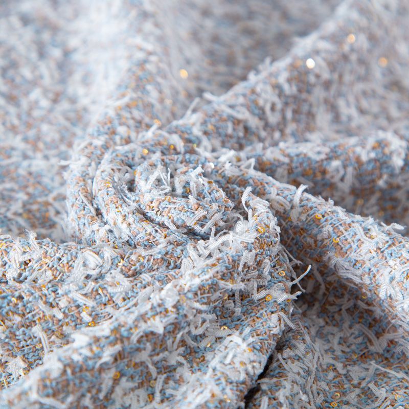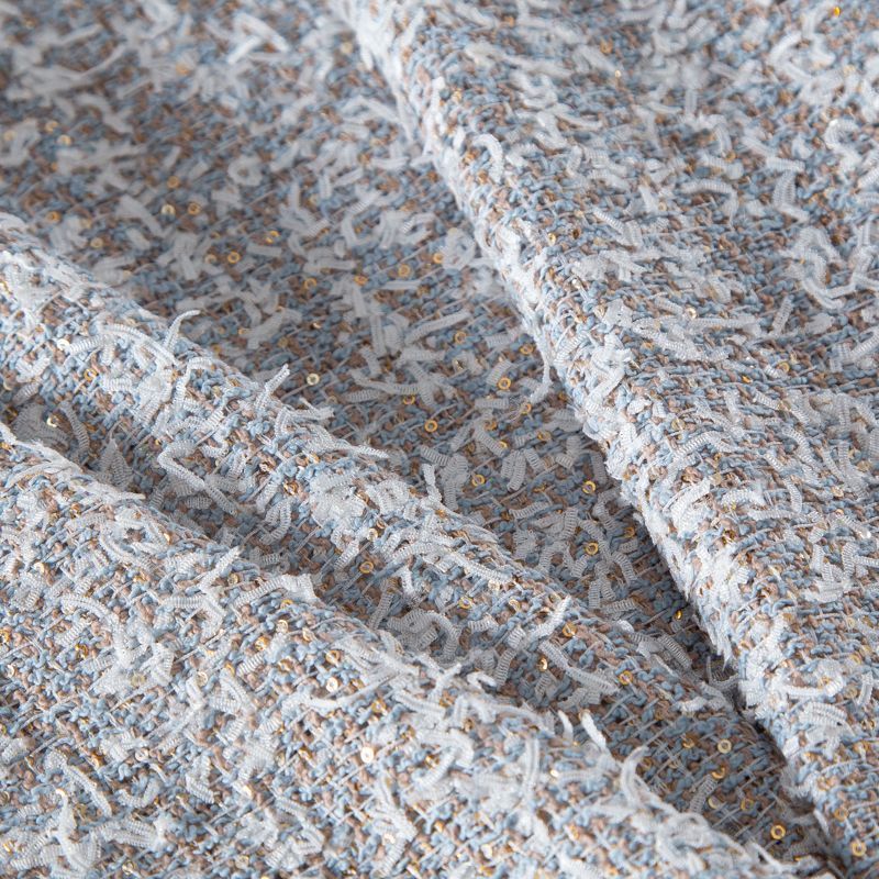 Твид с пайетками 052-20212 бежево-голубой в Санкт-Петербурге
