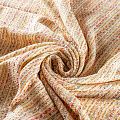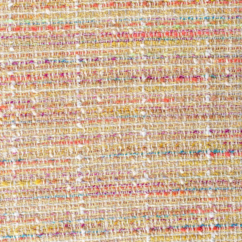 Мягкая ткань с рельефной вывязанной структурой. Буклированный твид в стиле Шанель буквально соткан из толстых разноцветных нитей, образующих рисунок в виде полоски или клетки. В плетение добавлены тесемки, волокна глянцевые и матовые. Твид идеально подходит для пошива юбок, жакетов, кардиганов, платьев и пальто в стиле Шанель.
