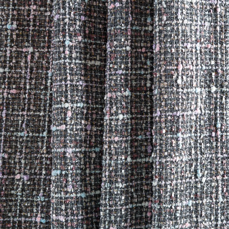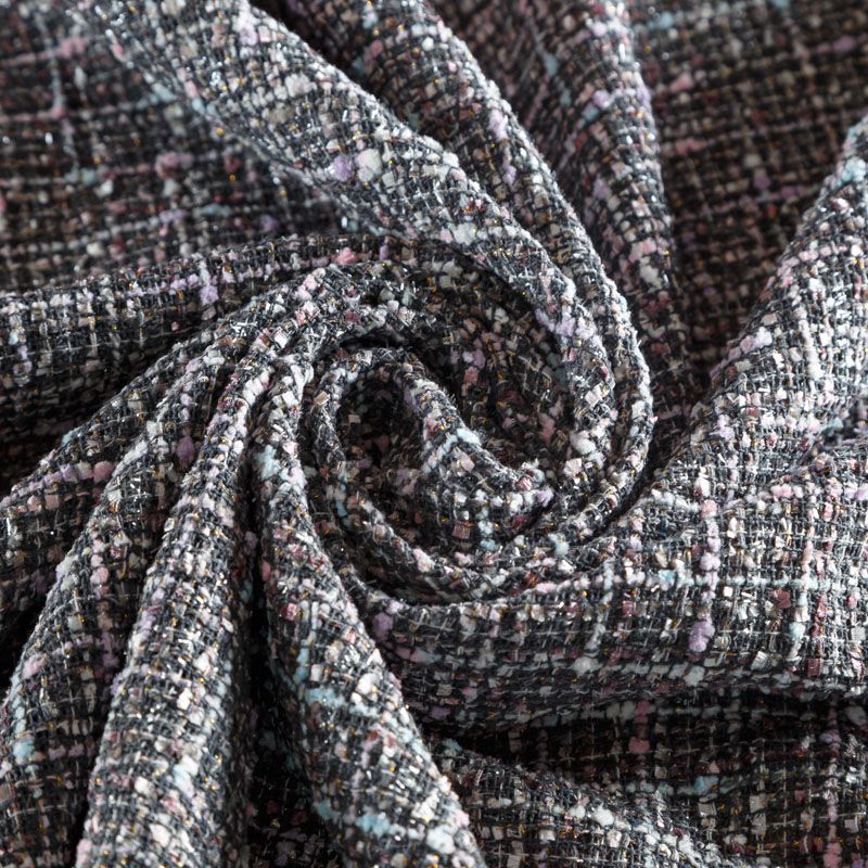 Переплетение разноцветных нитей делает эту ткань универсальной, и в тоже время оригинальной. Полотно плотное, но очень мягкое. Теплое, комфортное. Плетение рыхлое, поверхность фактурная, поэтому изделия выглядят достаточно объемно. Подойдет для пошива костюмов с юбкой, жакетов, облегченных пальто.