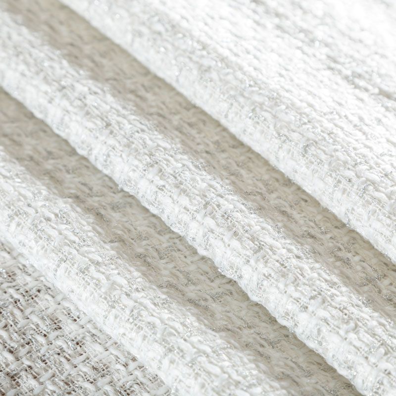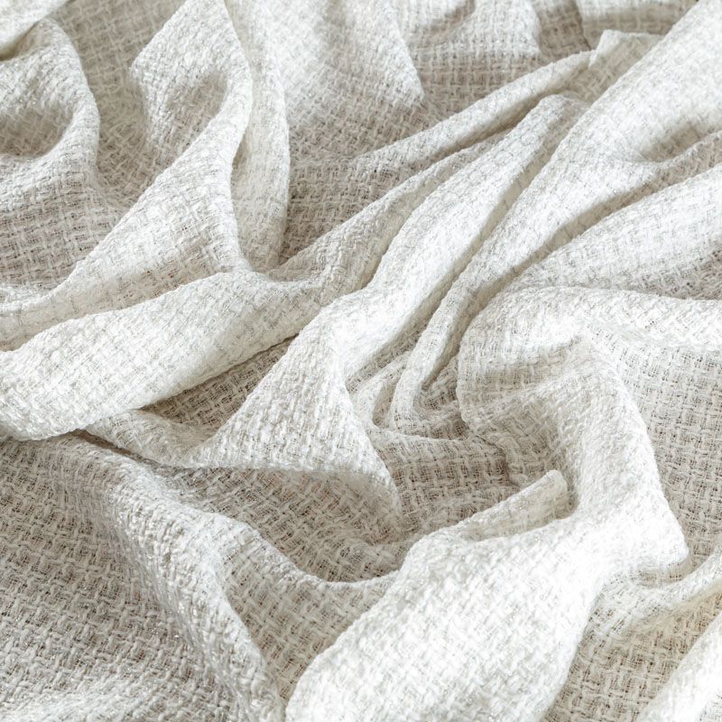 Мягкая, пластичная и объемная ткань, с разреженной и рельефной вывязанной структурой. Буклированный твид в стиле Шанель буквально соткан из различных по толщине и текстуре нитей, образующих рисунок в виде клетки. В плетение добавлена блестящая люрексная нить. Твид идеально подходит для пошива платьев, юбок, жакетов, легких пальто, эффектных бомберов и курток.