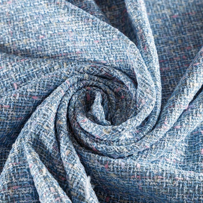 Переплетение разноцветных нитей делает эту ткань универсальной, и в тоже время оригинальной. Полотно средней плотности, очень мягкое, теплое и комфортное. Плетение рыхлое, поверхность фактурная, поэтому изделия выглядят достаточно объемно. Подойдет для пошива костюмов с юбкой, жакетов, облегченных пальто, кардиганов, жилетов, шорт.