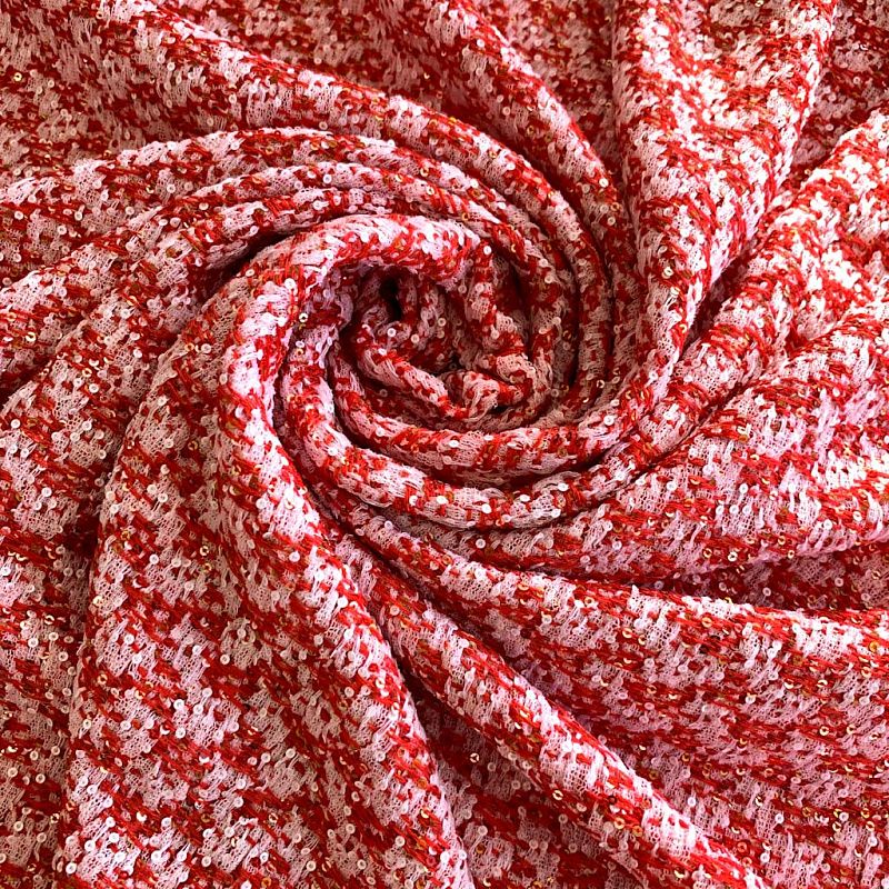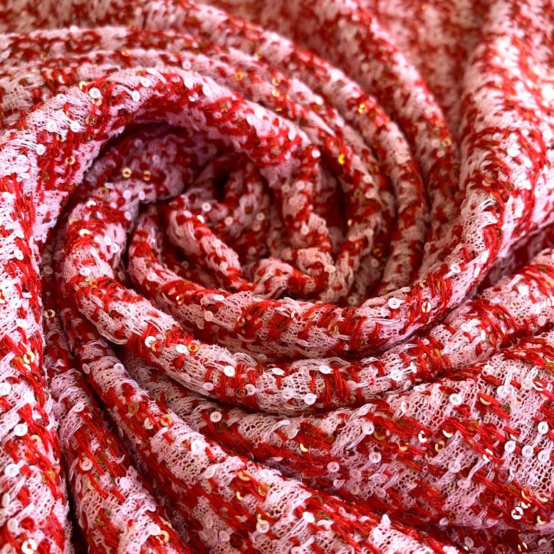 Твид шанель К13-864 красно-белый с пайетками в Санкт-Петербурге