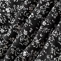 Качественный вискозный твил-штапель с нежным принтом из мелких букетиков на контрастном черном фоне. Мягкая ткань средней плотности, имеет саржевое плетение и характерный диагональный рубчик на поверхности. Хорошо сохраняет форму, не сильно мнется и не деформируется в процессе эксплуатации. Красиво ложится в складки, поэтому прекрасно подойдет на длинные драпированные юбки и платья, туники, на свободные брюки или шорты, топы.