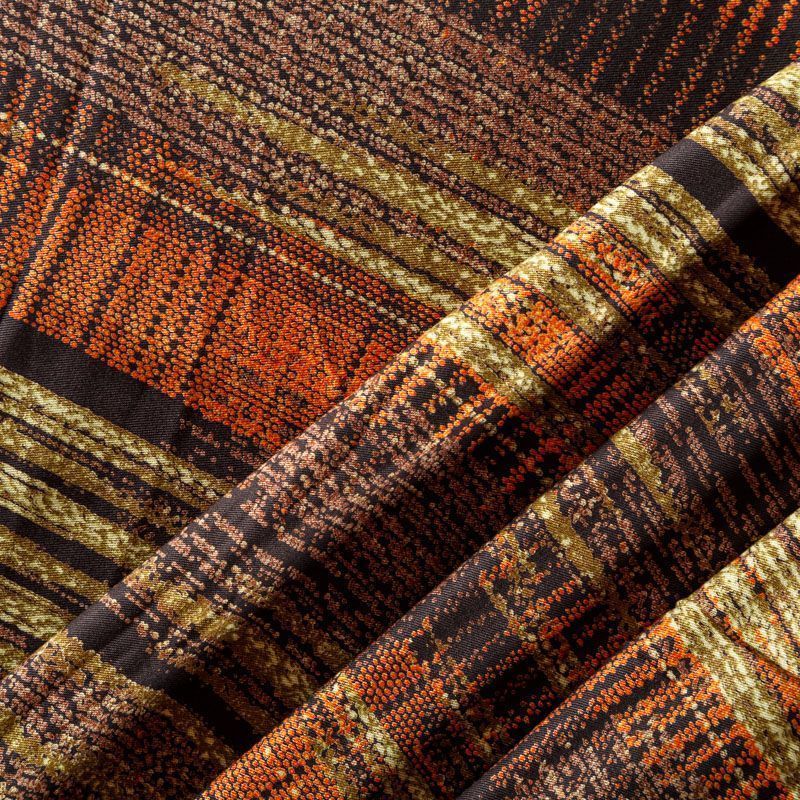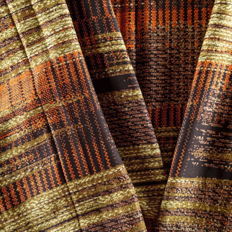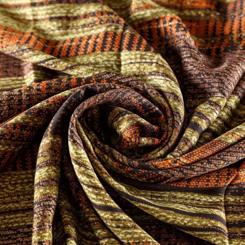 Плотная и мягкая ткань темно-серого оттенка с абстрактным принтом, имеет саржевое плетение и характерный диагональный рубчик на поверхности. Отлично сохраняет форму, не сильно мнется и не деформируется в процессе эксплуатации. Красиво ложится в складки, поэтому прекрасно подойдет на длинные драпированные юбки и платья, на свободные брюки или шорты, топы, платья-рубашки, комбинезоны, а также для домашней одежды.