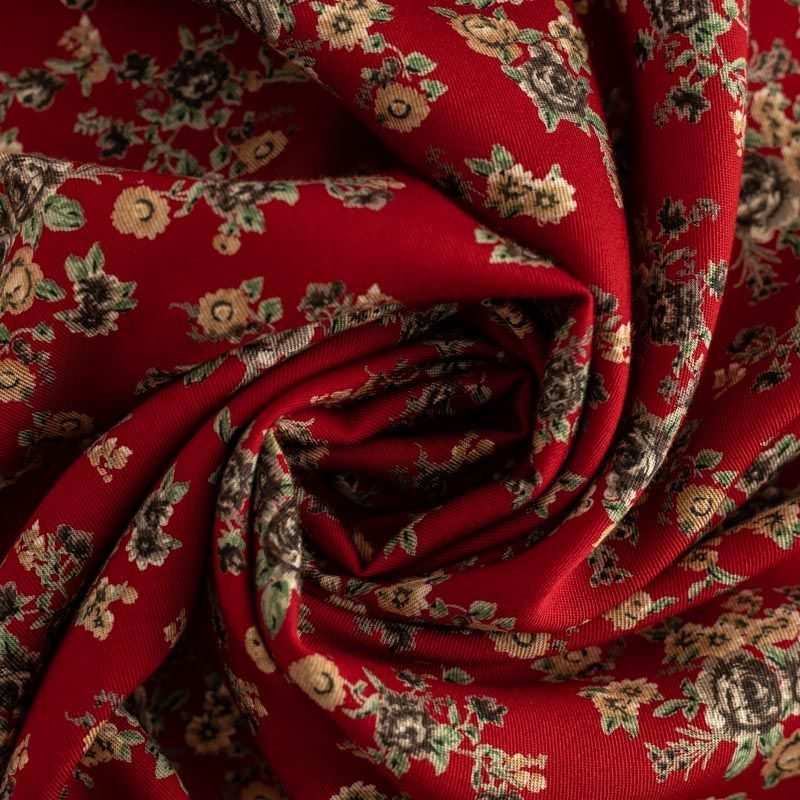 Твил-штапель К34-019 темно-красный принтованный