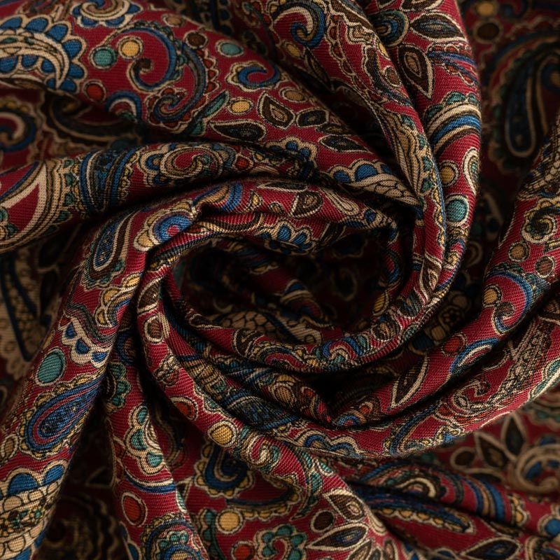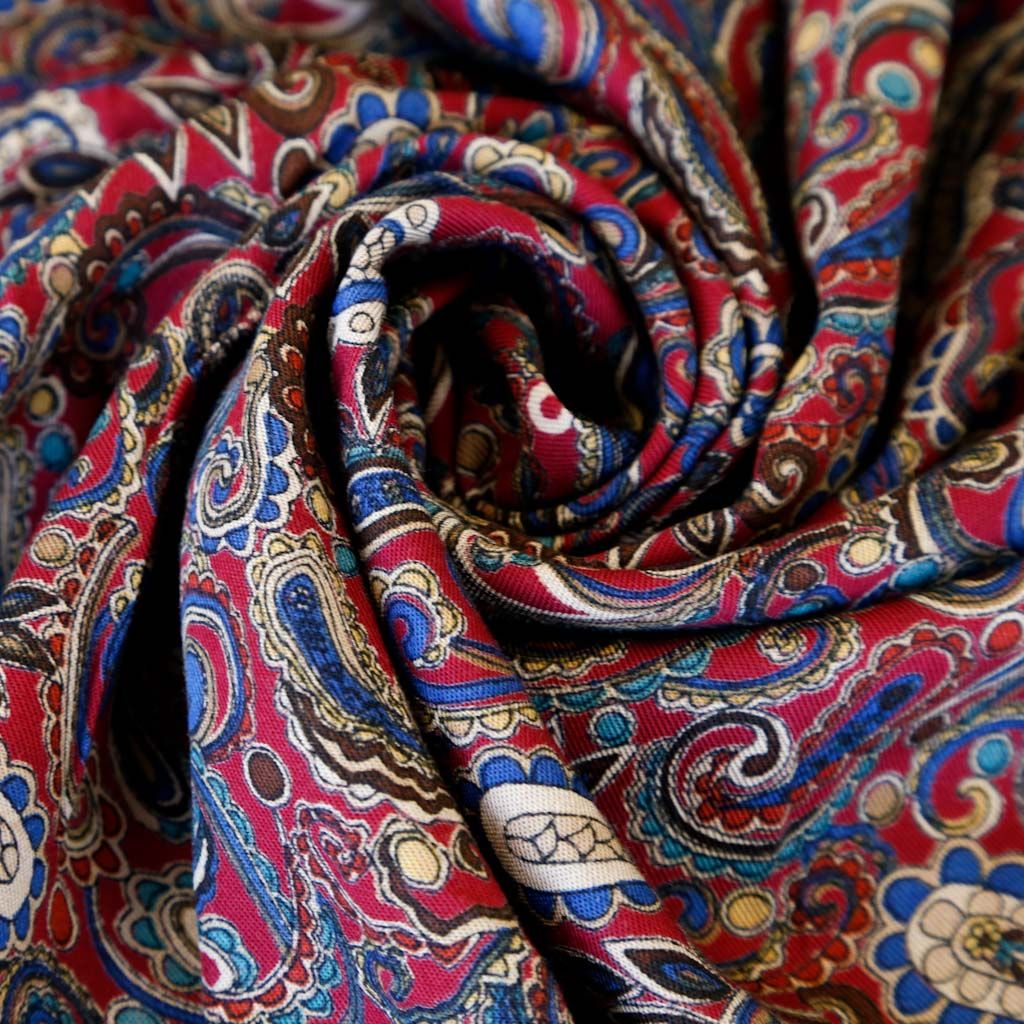 Плотная и мягкая ткань, имеет саржеве плетение и характерный диагональный рубчик на поверхности. Отлично сохраняет форму, не сильно мнется и не деформируется в процессе эксплуатации. Красиво ложиться в складки, поэтому прекрасно подойдет на длинные драпированные юбки и платья, на свободные брюки или шорты, топы.