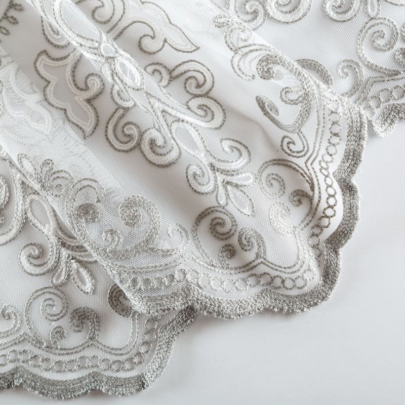 Тюль сетка с вышивкой 08-01-04650 молочный/серый
