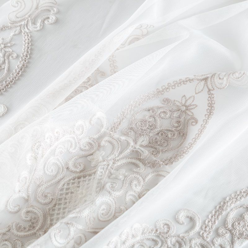 Сетка с вышивкой – это роскошный элемент дизайна, который преобразит любое помещение. Главные плюсы тюли-микросетки – простота, лаконичность, практичность и многофункциональность. Она отлично пропускает воздух, поэтому быстро сохнет после стирки. Прочная, ткань прослужит долго. Она хорошо держит форму, устойчива к разрывам. Выдерживает большое количество стирок. Легкая, фактура ткани практически невесома, поэтому можно не опасаясь крепить ее даже на самый тонкий карниз. Ткань очень послушная в пошиве. Материал прекрасно кроится, поддается проклеиванию.