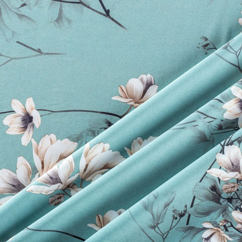 Это элегантная струящаяся ткань, которая превосходно драпируется, всегда изящно выглядит и остается легкой и воздушной,  имеет высокую прочность и большую износоустойчивость. Поверхность ткани матовая, гладкая и ровная, очень приятная на ощупь. Используется для пошива блуз, юбок, платьев, сарафанов, широких брюк.