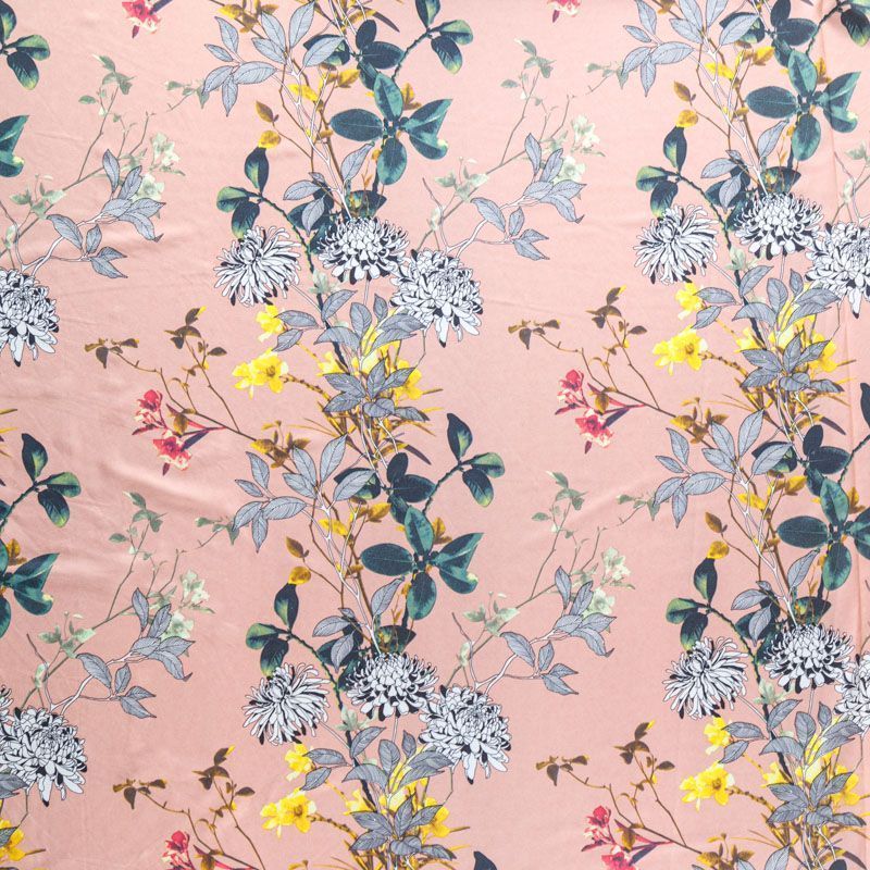 Легкая набивная ткань с цветочным принтом имеет высокую прочность, большую износоустойчивость. Ткань упругая, мягкая и хорошо драпируется, тянется за счет эластана в составе, образует струящиеся складки. Идеально подойдет для пошива блуз, юбок, платьев, сарафанов.
