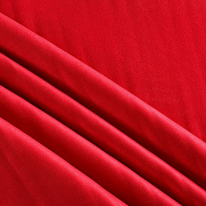 Плотное полотно с мягкой поверхностью, имитирующее замшевую фактуру с матовым ультракоротким ворсом. Комфортный материал достаточно пластичен, тянется за счет эластана в составе, отлично держит форму. Одежда из замши очень уютная и приятная на ощупь, хорошо облегает фигуру. Прекрасно подойдет для пошива платья, брюк, юбок, костюмов, тренчей и жакетов.