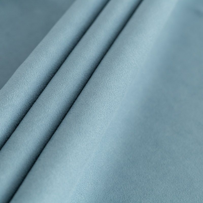 Ткань средней плотности с ворсистой и мягкой поверхностью, имитация замши. Практичная, износостойкая с высоким уровнем светонепроницаемости. Легко драпируется и держит заданную форму. Не сминается, быстро сохнет. Не требует дополнительного ухода.
