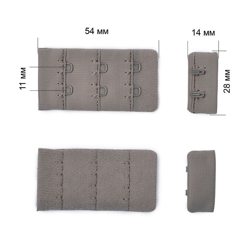 Текстильная застежка с 2 крючками и 3 рядами петель для бюстгальтера, ширина по линии втачивания 28 мм.
