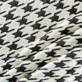 Плотная итальянская ткань молочного оттенка с жаккардовой структурой плетения нитей, образующих рисунок крупной гусиной лапки, украшенной люресовой нитью. Жаккард отлично держит форму, приятный и мягкий на ощупь. Прекрасно подойдет для пошива теплого костюма, жилета, пальто, бомбера.