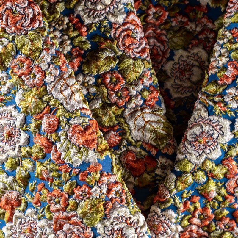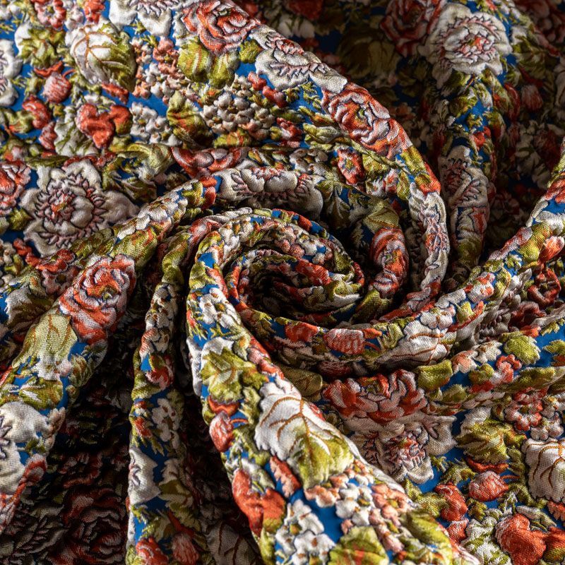 Итальянский жаккард с роскошным объемным цветочным узором, в яркой цветовой гамме. Ткань очень красивая, средней плотности, не тянется и не просвечивает, хорошо держит форму. Лицевая сторона с рельефным фактурным рисунком. Подойдет для пошива юбок, бомберов, летних пальто, жакетов, платьев различных силуэтов.